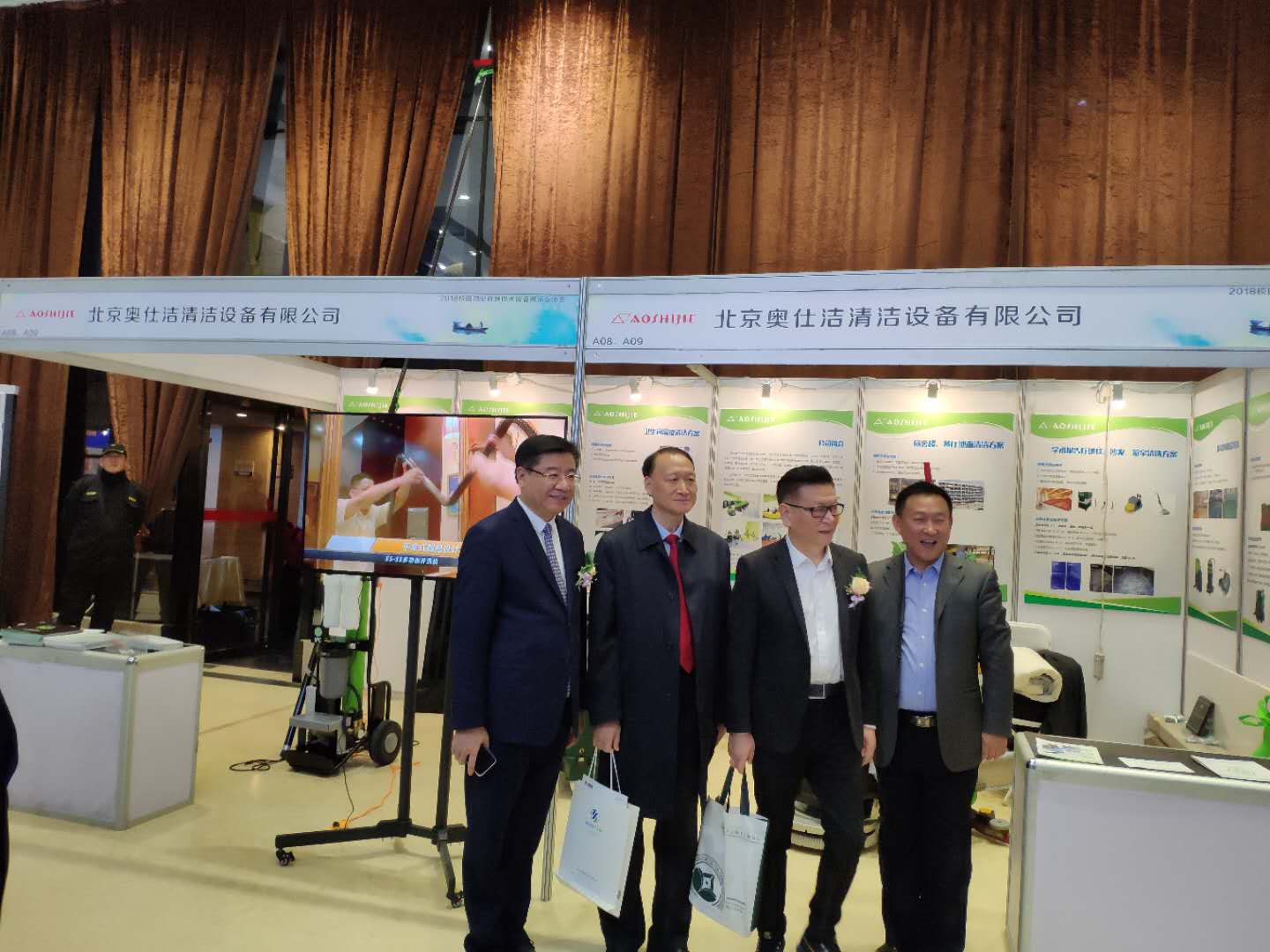 中國教育后勤協(xié)會(huì)副會(huì)長兼物專會(huì)主任朱寶銅先生于北京奧仕潔展位了解產(chǎn)品情況,且與北京奧仕潔總經(jīng)理劉章利先生留影。