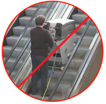 專業(yè)扶梯清潔機(jī):機(jī)器操作難度大,清潔寬度單一,單個(gè)扶梯清潔需要至少兩遍,效率低,且成本投入大。